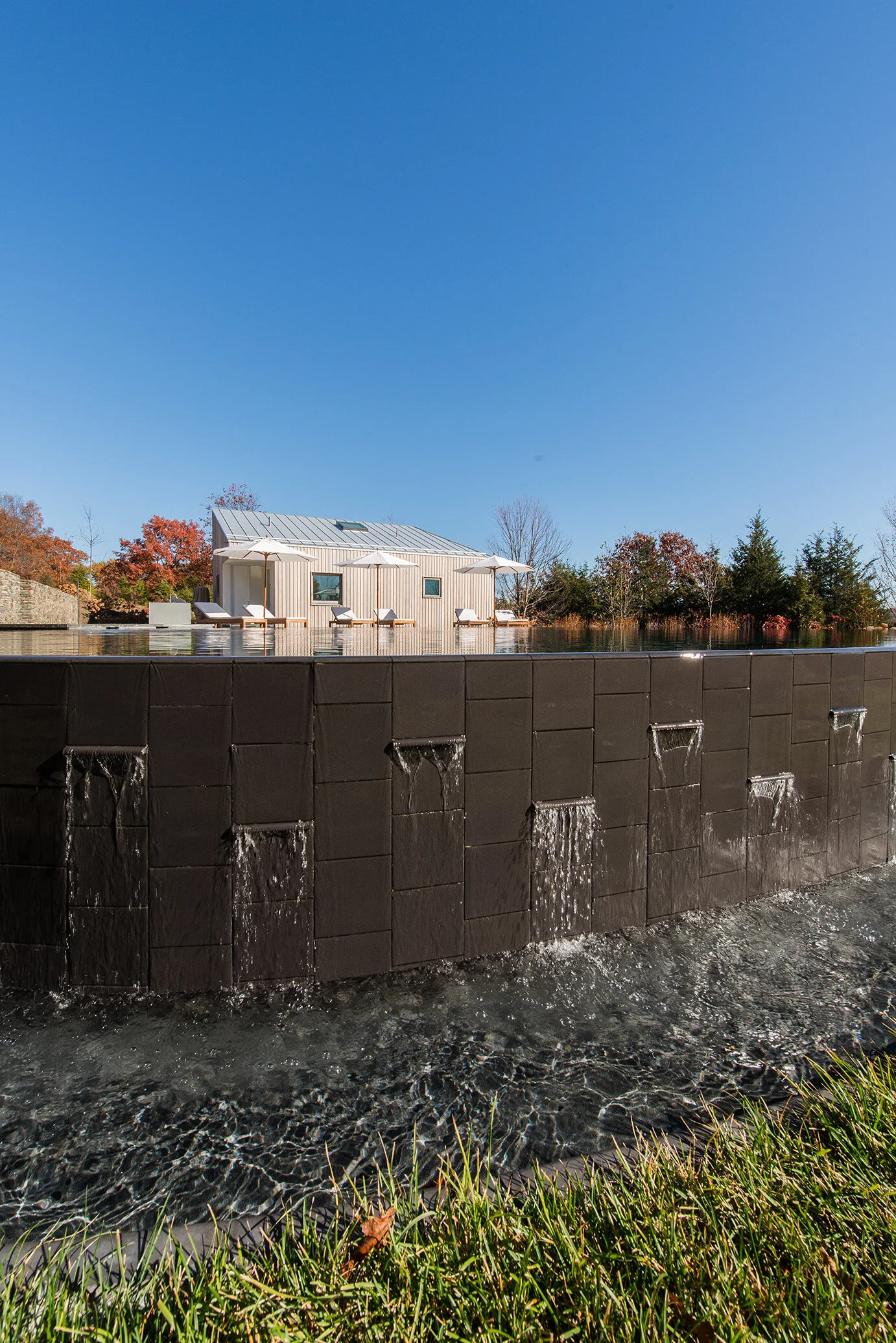 A series of individual structures and water elements located across the site’s 60 acres are connected by a series of trails.