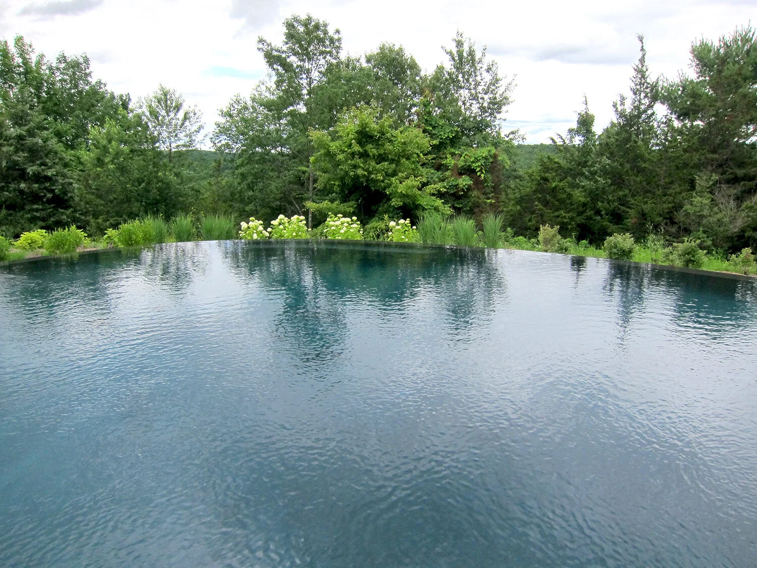 The 360° infinity-edge pool reflects the surrounding landscape.