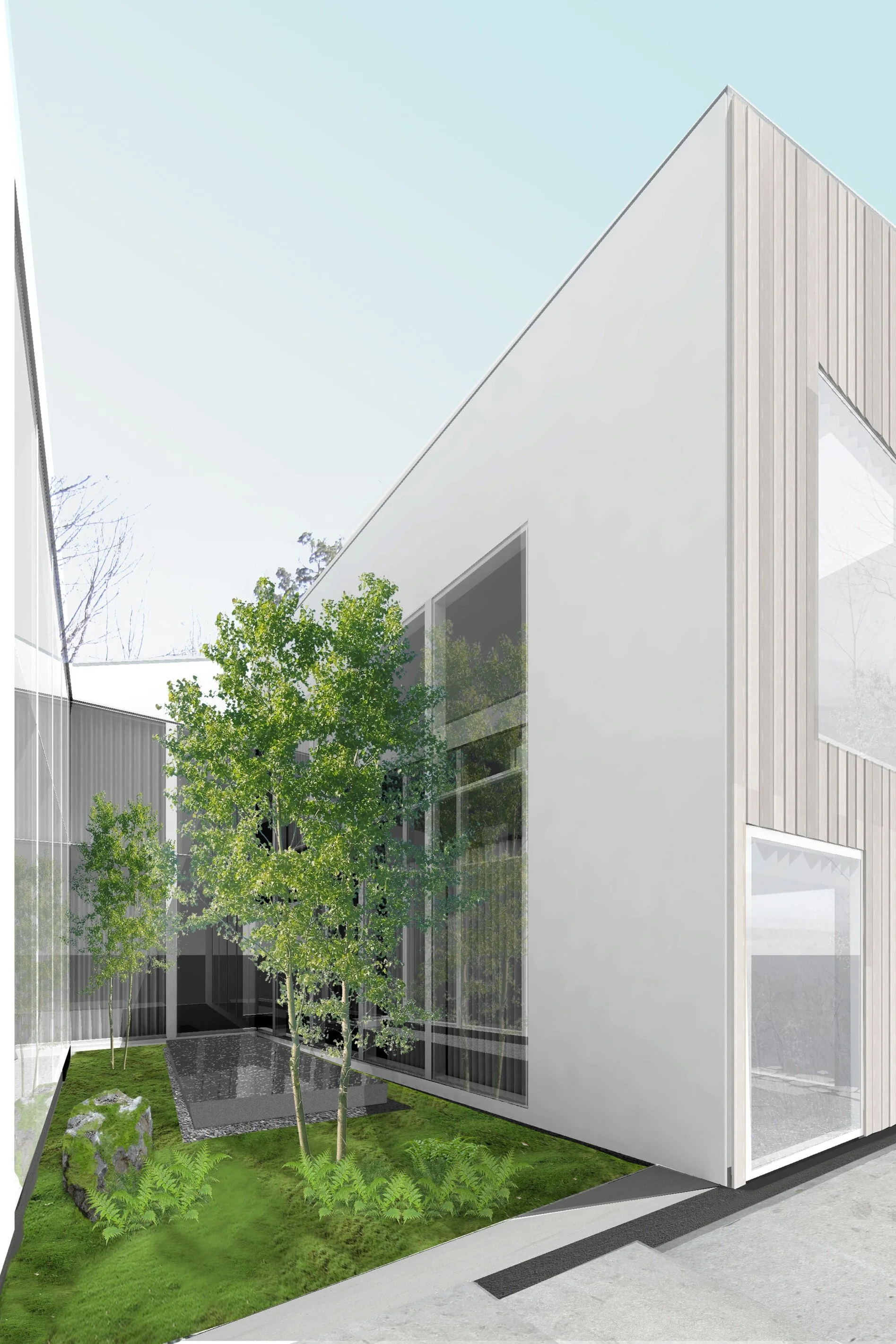 Underscoing the passae of time, the angled siding casts shadows that accentuate the varying location of the sun throughout the day and year.